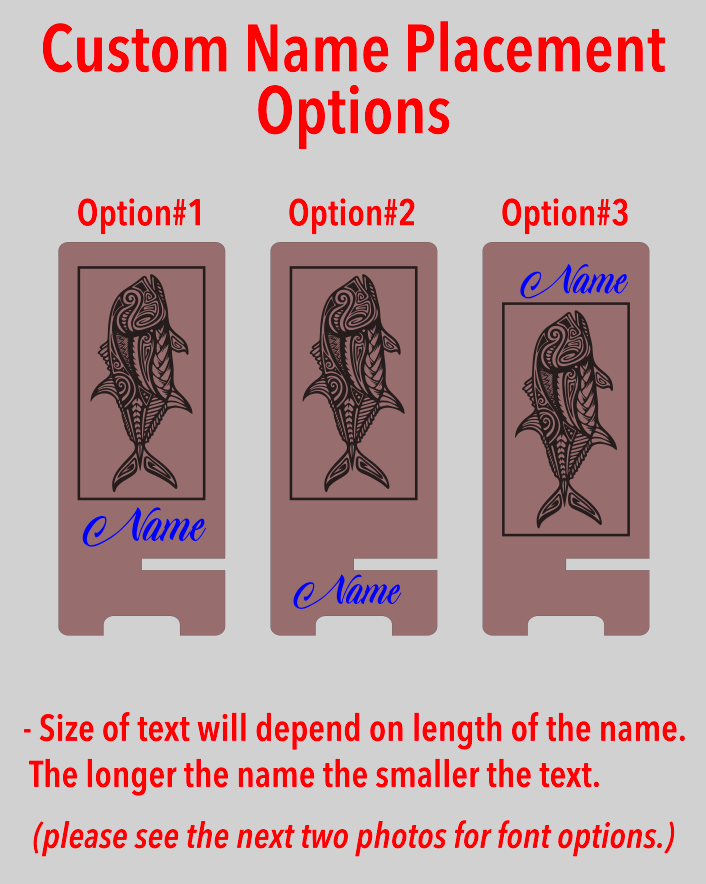 Add a name to your phone stand to create the perfect custom gift! When adding a name please be sure to verify spelling as I will write the name EXACTLY as you type it into the text box. Please refer to the sample photos for name placement.